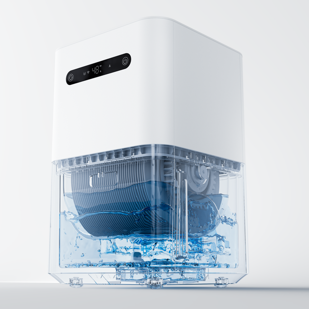 With mist-free humidification technology, the evaporator rotates to form a large, ultra-thin water film. A strong cross-flow fan blows above the film, accelerating evaporation. This provides natural humidity in a gentle way that is ideal for infants, the elderly, and people with sensitive nasal passages.