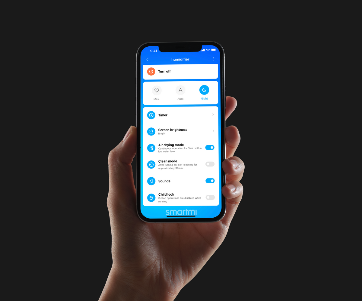 Setting relative humidity from 30% to 60% to keep the space comfortable through Mi Home APP. High-precision sensor accurately monitors the ambient humidity in real-time to adjust moisture output automatically.